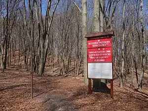 Це заповідник фауни ( степовий ), часткова площа 36,77 га, створений в 1957 році у тодішньому селі Тинець . Займає фрагмент площі зарослий лісовими і теплолюбними заростями, а на його околицях і полянах є також піщані і ксеротермічні луки. Захищає ліс сосна - ялина - бук , рослинність ксеротермічна , зокрема, близько 500 видів рідкісних метеликів і оси, серед інших Бархатниця Дріади [2] [3] .