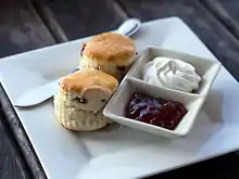 Скон (англ. scone, вимова /skɒn/ або /skəʊn/) — це випічка, яка зазвичай виготовляється з пшениці або вівсяного борошна з пекарським порошком у якості розпушувача і випікається на листових деках. Скони часто злегка підсолоджуються і іноді глазуруються яєчною намазкою.[1] Скони є основним компонентом так званого девонширського чаю з вершками. Вони відрізняються від кексів та інших видів солодощів, які роблять із дріжджами. Під час австрійського головування в Європейському Союзі в 2006 році, скони було обрано, як випічку, що репрезентує Республіку Ірландія у Café Europe, в той час як Велика Британія обрала пісочне печиво.