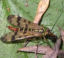![]() Самиця Panorpa communis зі здобиччю | ||||||||||||||||
