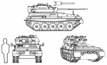 легкий танк FV101 Scorpion Схема: моторно-трансмісійне спереду справа, управління ліворуч, бойове ззаду | ||||||||||||||||