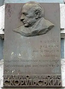 Меморіальна дошка на будинку вул. Володимирська, 48, Київ, в якому у 1944–1950 рр. мешкав композитор