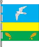 Квадратне полотнище, яке складається з трьох горизонтальних смуг — синьої, жовтої та зеленої у співвідношенні 2:1:1. На верхньому полі біла чайка, яка летить, та на нижньому зеленому полі обабіч жовті жолуді з стеблом і листям.