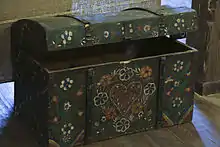 Колекція українських скринь XVIII—XIX ст. зберігається в зібраннях історико-культурного комплексу «Замок Радомисль».