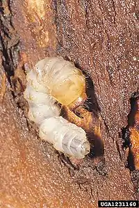 Личинки товсті, білувато-коричневі, з темно-коричневою «головою»