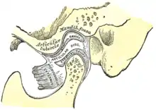 ![]() Скронево-нижньощелепний суглоб. Медіальна поверхня. | |