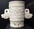 Художня кераміка було характерним для маянського мистецтва. Вона представлена різноманітними за формою, вкритими розписом культовими посудинами. Разом з тим рідше зустрічаються фігурні посудини. Одним з найдавніших зразків є посудина у вигляді типової ольмекської голови, що відноситься до пізнього докласичного періоду. У класичний період широко поширені були посудини з багатим рельєфним і навіть горельєфним орнаментом. Серед них виділяються високі культові посудини з Паленке з горельєфними зображеннями особи бога сонця. На думку більшості вчених, вони слугували підставками для храмових курильниць. У більш пізній час близький тип курильниць з'являється в північно-східній Гватемалі.