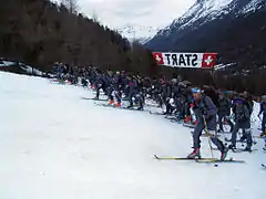 Старт скі-альпіністів, Швейцарські Альпи, 2006.