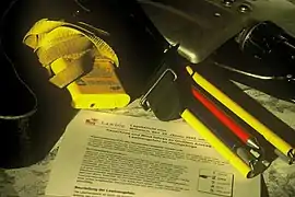 Спорядження для занять скі-альпінізмом: лавинний датчик, лавинний зонд, карта.