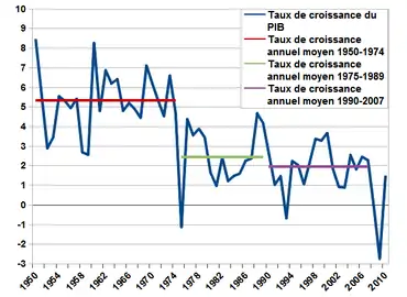 На першу половину "Славного тридцятиліття" довелося економічне відновлення країн, що постраждали під час Другої світової війни (план Маршалла). Для всього періоду в цілому було характерно: