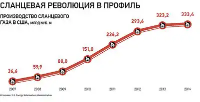 За підсумками 2009 року сланцевого газу в США видобували 14 % від всього горючого газу. Попри економічну кризу і падіння споживання в США, загальний видобуток газу збільшився на 3,7 % до 624 мільярдів кубометрів, при серйозному падінні видобутку «звичайного» газу. США вперше за останні десятиліття за обсягами видобутку обігнали Росію. Дану ситуацію головний виконавчий директор BP Тоні Гейвард назвав «тихою революцією». За його словами, ці додаткові поставки і набута США самостійність в забезпеченні газом викликали перенасичення світового газового ринку і зниження цін.