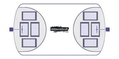 Розмір майданчика повинен становити 30.4 м ову довжину і 19 м ову ширину. Що стосується батутів, то тут ці показники становлять, відповідно, 2.1 м та 4.2 м . На майданчику є бортики, як в хокеї . На гравцях повинна бути надіта захисна екіпірування , щоб захистити всі самі уразливі частини тіла. Вона складається з захисту на лікті, наколінників, спеціального легкого шолома , що сидить за формою голови, а також захисного натільної білизни.