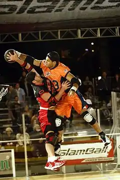 Силовий контакт дозволений, але є певні обмеження, зокрема не можна атакувати гравця, що володіє м'ячем, якщо тільки він не стукає їм по майданчику. Також заборонені удари ззаду.