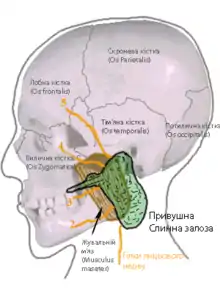 - привушні — крупнодольчасті, альвеолярного типу, виділяють серозний (рідкий) секрет, вивідна протока відкривається на рівні другого верхнього кутнього зуба;