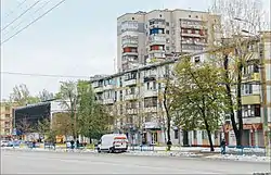 ![]() Слобожанський проспект у районі тролейбусного шляхопроводу Слобожанський проспект у районі тролейбусного шляхопроводу | |