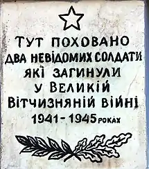 1950 року на братській могилі 2-х невідомих радянських воїнів, що загинули у 1943 році в ході німецько-радянської війни під час відвоювання села, встановлено пам'ятник.