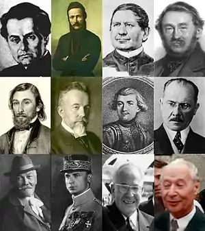![]() Антон Бернолак, Людовит Штур, Йедлик Аньош Іштван, Йозеф Петзвал, Павол Оршаг Хвіздослав, Штефаник Мілан Ростислав, Густав Гусак, Олександр Дубчек | |