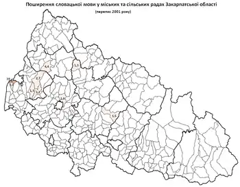 Менші групи словацького населення проживають у Свалявському районі (400 осіб), Великоберезнянському, Іршавському, Перечинському районах (300 осіб), Мукачівському районі (200 осіб)
