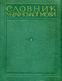 ![]() Обкладинка першого тому «Словника української мови» | |