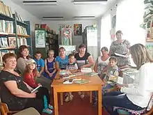 - Левченко Л. В. Мудрість всіх віків, хранителька добра // Єдність.-2013.-12 червня (60-ти річчя бібліотеки — філії Великомихайлівської ЦБС).