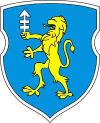 - Затверджений герб Слоніма: золотий Лев з подвійним срібним хрестом із стрілкою на блакитному полі.
