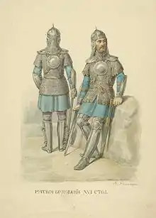 - Илл. 92. Ратники в тегиляях и шапках железных // Историческое описание одежды и вооружения российских войск, с рисунками, составленное по высочайшему повелению: в 30 т., в 60 кн / Под ред. А. В. Висковатова. — Т. 1. (рос.)