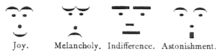 Я часто думаю, що повинен існувати спеціальний типографський знак, який означає посмішку, — щось начебто вигнута лінія, лежача навзнак дужка; саме цей значок я поставив би замість відповіді на ваше питання[7].Оригінальний текст (англ.)I often think there should exist a special typographical sign for a smile — some sort of concave mark, a supine round bracket, which I would now like to trace in reply to your question.