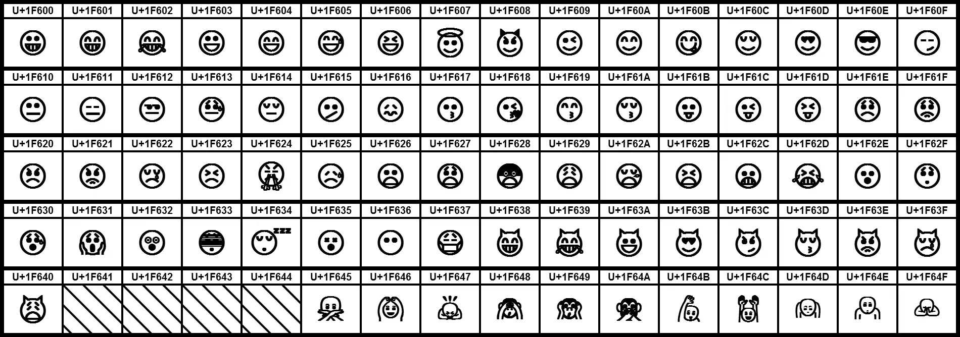 | U+1F600 (128512) | 😀 | обличчя, що посміхається | GRINNING FACE |