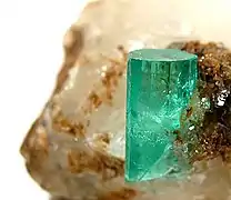 - смарагд бразильський (бліді смарагди або світло-жовто-зелені берили; кристали у вигляді гексагональних призм з певними вадами; зустрічаються в пустотах змінених мармурів у Карнаіба, штат Баїя, Бразилія),
