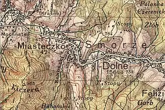Західна частина села історично іменувалася Містечко Сможе (пол. Smorze Miasteczko, івр. סמוז'ה מיאסטצקו), а східна — Сможе Долішнє, Сможе Нижнє. Вживалися також назви Сморже,[3] Сморже Містечко, Сморже Долішнє, Сморже Нижнє.