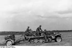 ![]() Німецька мотопіхота на бронетранспортері Sd.Kfz 10 з мінометом «28/32 cm Nebelwerfer 41». Серпень 1943 Німецька мотопіхота на бронетранспортері Sd.Kfz 10 з мінометом «28/32 cm Nebelwerfer 41». Серпень 1943 | |||||||