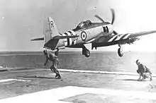 Наказ про нанесення чергуючих чорно-білих смуг на літаки був відданий 5 грудня 1942 року. Згідно з ним, на нижню поверхню крил всіх «Тайфунів» та «Темпестів» наносили по чотири чорні смуги шириною 30 сантиметрів та по три білі смуги шириною 61 сантиметр [1]. З 1943 року до стандартної колірної схеми була додана жовта смуга шириною 46 сантиметрів, яка йшла від гармати з боку фюзеляжу по верней площині кожної з консолей крила [3] [4].