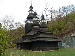 - український закарпатський храм — церква святого Михайла (Karpatský chrám svatého archanděla Michaela), що був споруджений у 2-й половині XVII століття у селі Великі Лучки (нині Мукачівського району Закарпатської області, Україна), і 1929 року розібраний, перевезений і знову поставлений у Парку Кінського[3];