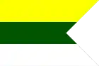 Прапор міста складається з трьох однакових за шириною смуг жовтого, зеленого і білого кольору розташованих вертикально. Прямокутне полотнище має трикутний край і співвідношення сторін 2:3.