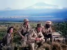 Фільм починається зі вступного слова — розповіді Хемінгуея: «Кіліманджаро — це засніжені гори 19,710 футів у висоту, що вважаються найвищими горами в Африці. Їх західні вершини називають Масаї 'Нгджі Нгі' дім Божий. Недалеко від західної вершини є висушена та заморожена туша леопарда. Ніхто не знає, що міг леопард шукати на такій висоті».