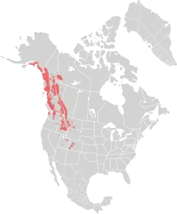 Канада (Альберта, Британська Колумбія, Північно-Західні території, Юкон), США (Аляска, Колорадо — Введена, Айдахо, Невада — Введена, Орегон — Введена, Південна Дакота — Введена, Юта — Введена, Вірджинія, Вашингтон, Вайомінг — Введена)