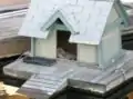 Люди будують «будиночки» для домашніх тварин, які часто нагадують менші версії жител самих людей. До них належать шпаківні, курники, кролятники і собачі будки; в той же час сільськогосподарські тварини частіше утримуються у стодолах та стайнях. Собачі будки часто використовуються, коли тварина знаходиться на відкритому повітрі (на подвір'ї або в саду) та на ділянках навколо ферми, де вона охороняє майно власників від небажаних/несподіваних людей чи тварин. Будка для собак зазвичай виготовляється з теплоізоляційного матеріалу (найчастіше з дерева) для запобігання втрати тепла, за винятком переднього отвору — входу/виходу для собаки. Дах майже завжди з водонепроникного матеріалу, оскільки він захищає від опадів (снігу чи дощу). Часто власник домашнього улюбленця повинен мати можливість відкрити або зняти дах.
