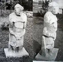 У центрі святилища на глибині 0,8 м від сучасної поверхні кургану в ґрунт була вкопана кам'яна баба. Судячи з розташування основи, збереглося первісне положення, скульптура була орієнтована обличчям на схід. Уламки верхньої частини статуї були знайдені поруч з основою. Біля підніжжя статуї симетрично лежали на відстані 0,8 м на північ і на південь від основи два вапнякових округлих камені.
