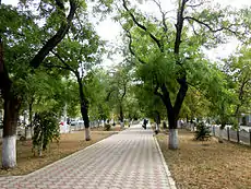 ![]() Зелена зона із пішохідною алеєю посеред проспекту Зелена зона із пішохідною алеєю посеред проспекту | |