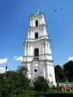 Дзвіниця (1766–1770, архітектор Андрій Квасов[10]) квадратна в плані (10 х 10 м), чотириярусна. Перший ярус оформлено рустом, другий — тосканським ордером, третій — іонічним, четвертий — коринфським. Увінчує дзвіницю барокова верхівка. Висота дзвіниці із хрестом 50 м.