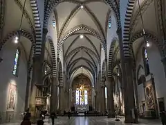 У капелі Гонді — творіння Джуліяно да Санґало — на склепінні представлені фрагменти фресок грецьких художників XIII століття, а на вівтарній стіні — уславлене Розп'яття Брунеллескі. В Капелі Строцці ді Мантова на вівтарній стіні міститься фреска із зображенням Страшного Суду, на правій стіні — Пекло, на лівій — Рай Нардо ді Чоне або Орканьї. В цьому ж храмі написана знаменита Трійця (Мазаччо).