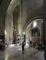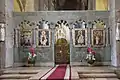 Біля південно-західного стовпа розташована кам'яна кафедра католікоса. Згідно з написом на ній, вона була розписана на межі XVII—XVIII століть. У розписі звертає на себе увагу композиція «Сон Якова», де ангели спускаються на землю сходами і сцена з легенди про хітоні Господньому, пов'язаної з будівництвом храму Светі-Цховелі. Невисока вівтарна перешкода з глухим парапетом з різьблених плит з відкритою аркатурою над ними встановлений під час реставрації 1972 замість багатоповерхового різьбленого іконостасу XIX століття.