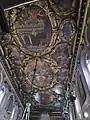 Фасад мармурового іконостасу нагадує зовнішній вигляд входу церкви в стилі бароко. Стеля церкви розділений на сегменти, що зображають сцени з життя і чудеса святого Спиридона. Оригінальним живописцем стелі церкви був Панайотис Доксарас, який росписав її в 1727 році. З плином часу росписи Доксараса згнили, а згодом їх замінили копії, намальованим Ніколаосом Аспіотисом.[3] Єдиним, що залишився від робіт Доксараса, є позолочена межа іконографії.[4]