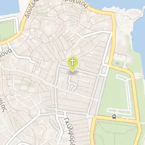 Собор побудований у 1590 році, а його дзвіниця є найвищою в місті. Нинішня будівля, зведена у 1590 році у венеціанському стилі, не схожа на інші церкви Греції.[1] Дзвіниця церкви за конструкцією схожа на сучасну грецьку православну церкву Сан-Джорджіо-дей-Гречі, розташовану у Венеції.[2]