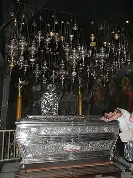 Відсутність підземної камери для розміщення останків святого була частиною продуманого дизайну, щоб зробити їх максимально доступними. У склепі 53 лампадки, які висять із стелі, 18 з яких золоті, а решта - зі срібла.[3]