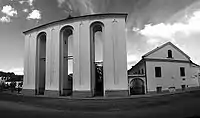 Костел Святої Трійці згорів і від нього не залишилося нічого над поверхнею землі. Однак від комплексу залишилися дзвіниця та П-подібний будинок під назвою «монастир шариток». З дзвіницею будинок з'єднаний аркою. Це двоповерховий будинок із двосхилим дахом. З північного боку посередині є п'ятигранний ризаліт, в мурах якого є дубові перев'язі. Загалом будинок складається із двох частин: