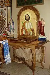 У розписі ікон іконостасу та вівтаря брав участь відомий польський іконописець Адам Отеховський.