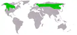 Ареал охоплює Північну Америку від Центральної Аляски на схід до Західного Квебека. У Євразії — на північ до 52° пн. широти від Скандинавії на схід до басейну Анадиря, узбережжя Охотського і Японського морів.