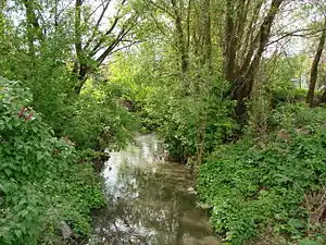 У верхній течії — річка протікає природним руслом, після нижноього каскаду ставків — в основному в колекторі.