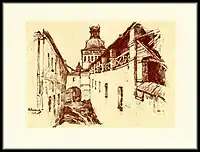 В. Соколов, автолітографія «Троїце-Сергіїва лавра. Келії монастиря біля Калічій вежі», до 1921 р.