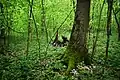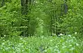 В травостані домінує осока (покриття 50-60%); асектаторами виступають неморальні види, такі як копитняк європейський, зеленчук жовтий, зірочник лісовий, мерінгія трижилкова, фіалки собача, шерстиста, Рейхенбаха, купина широколиста, медунка лікарська. Зустрічаються також більш світлолюбиві види субсередземноморського неморального комплексу: холодок тонколистий, купина лікарська, пупівник лісовий, шоломниця висока. Зростає велика популяція підсніжника білосніжного.